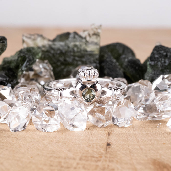 Claddagh Ring | Moldavite Gemstone .925 Silver