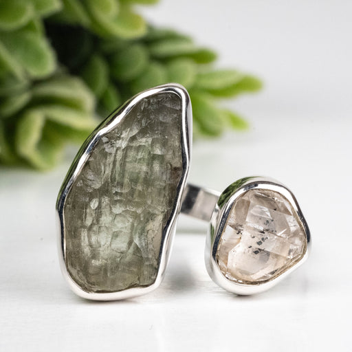 View full detailsMoldavite 18mm + Herkimer Diamond 9mm Ring Size 10 .925 Silver