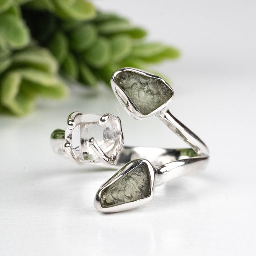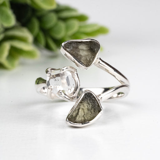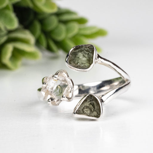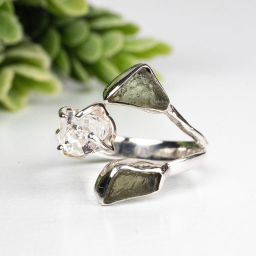 View full detailsMoldavite + Herkimer Diamond Ring 5mm-7mm Size 7 .925 Silver