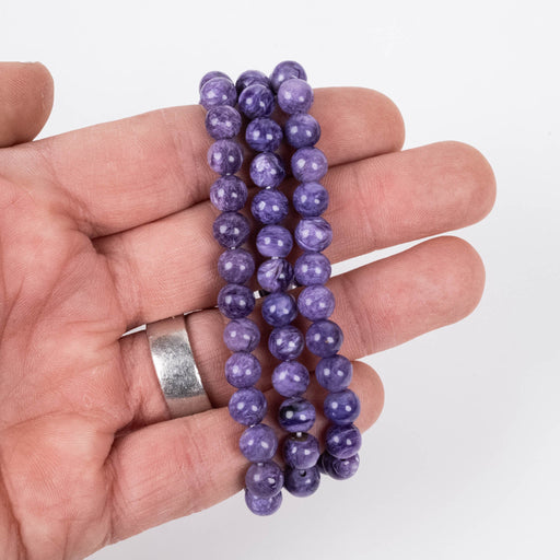 These Bead Bracelets are awesome. AAA grade Charoite 7 - 8mm beads Fits up to 8" Wrist, will be a little snug over 7.5" We are very happy to h...