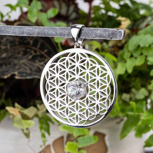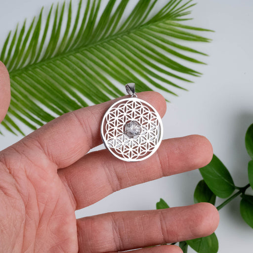 Flower of Life Pendant | Herkimer Diamond Quartz .925 Silver