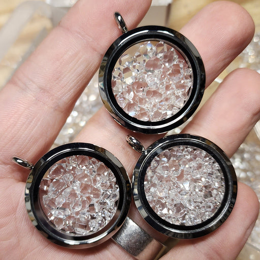 11/13/25 Back in Stock! Stainless Steel 30mm Floating Locket filled with 1mm - 5mm Micro AA Grade Herkimer Diamond Quartz Crystals from right here ...