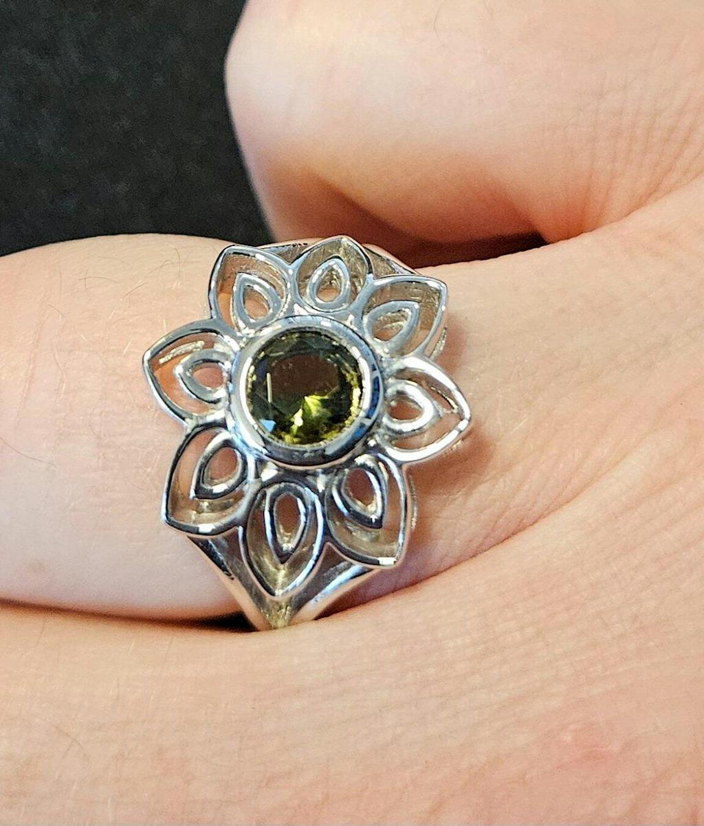 Lotus Ring | Moldavite Gemstone .925 Silver