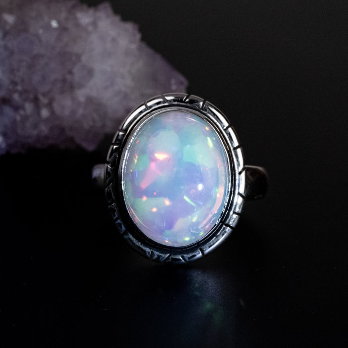 Ethiopian Opal Ring 16x12mm Size 9 .925 Silver