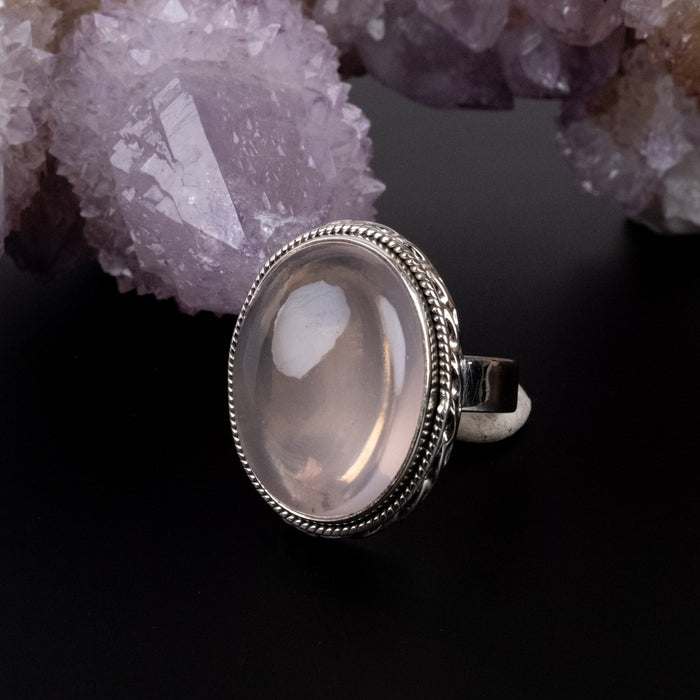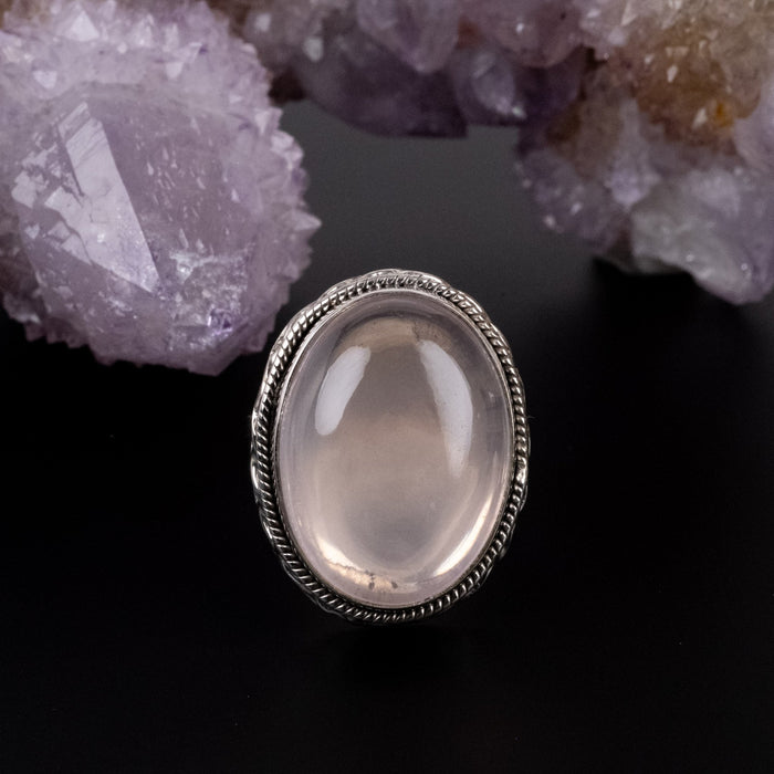 Rose Quartz Ring 23x18mm Size 9 .925 Silver