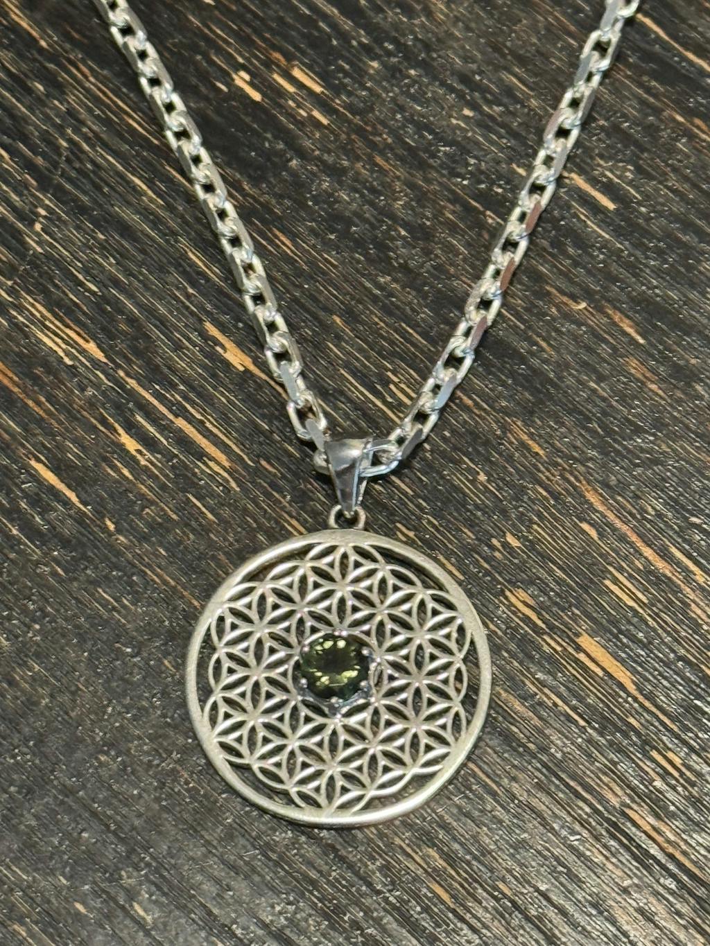 Flower of Life Pendant | Moldavite Gemstone .925 Silver