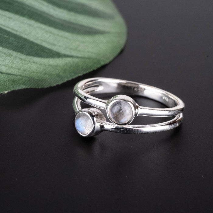 Rainbow Moonstone Ring 4mm .925 Silver | Choose Size